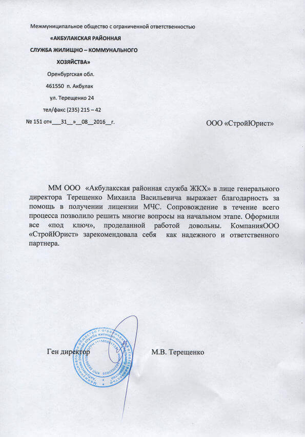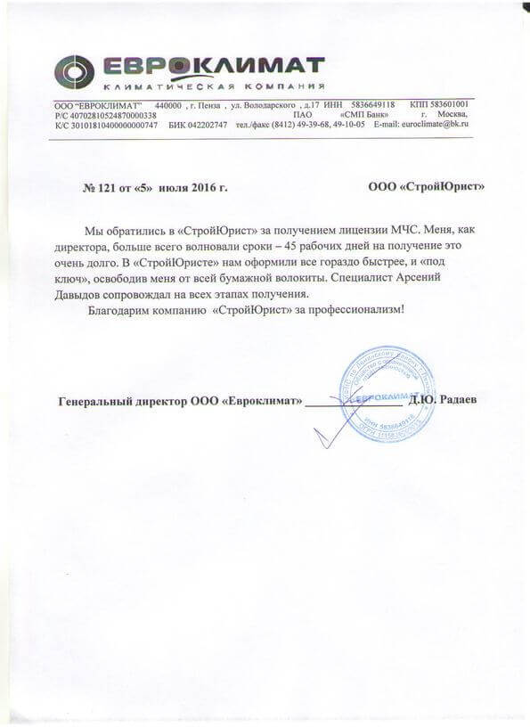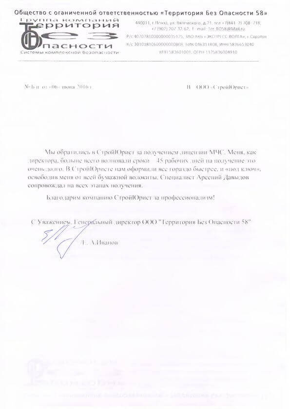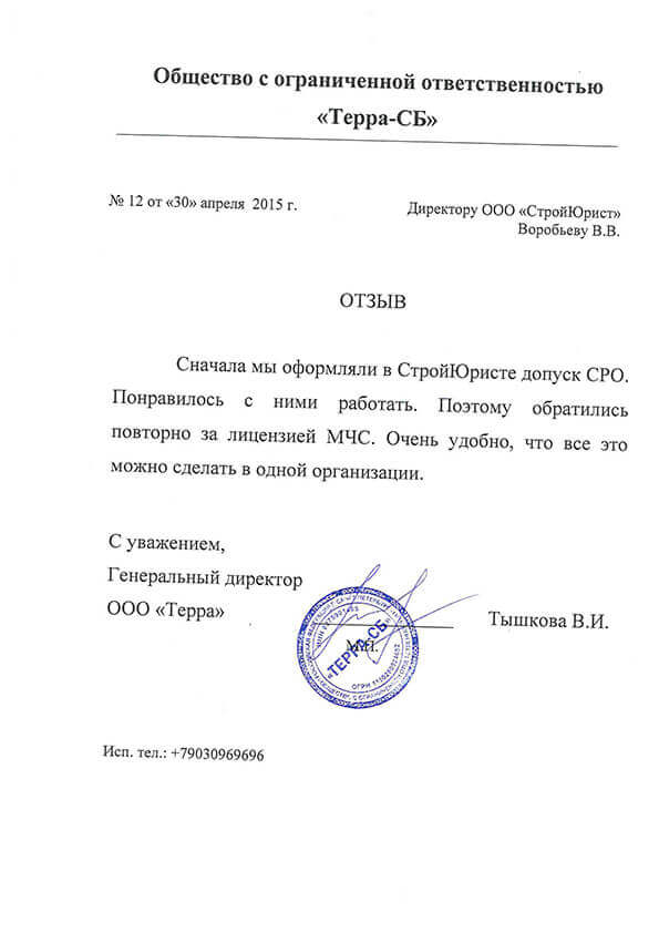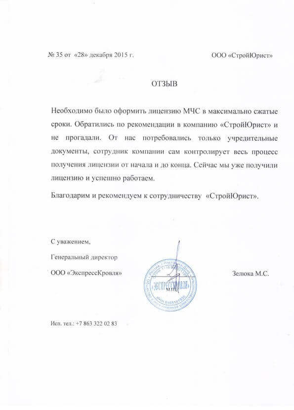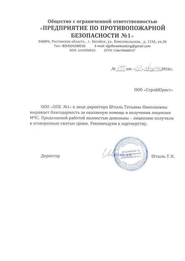 Отзывы клиентов "СтройЮрист" по лицензированию МЧС в Улан-Удэ