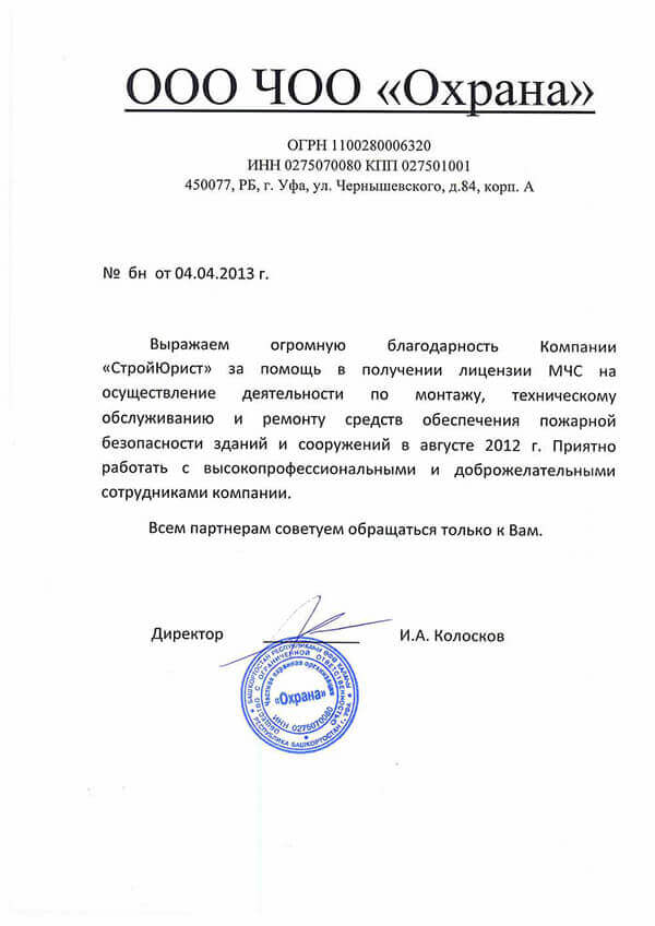 Отзывы клиентов "СтройЮрист" по лицензированию МЧС в Улан-Удэ